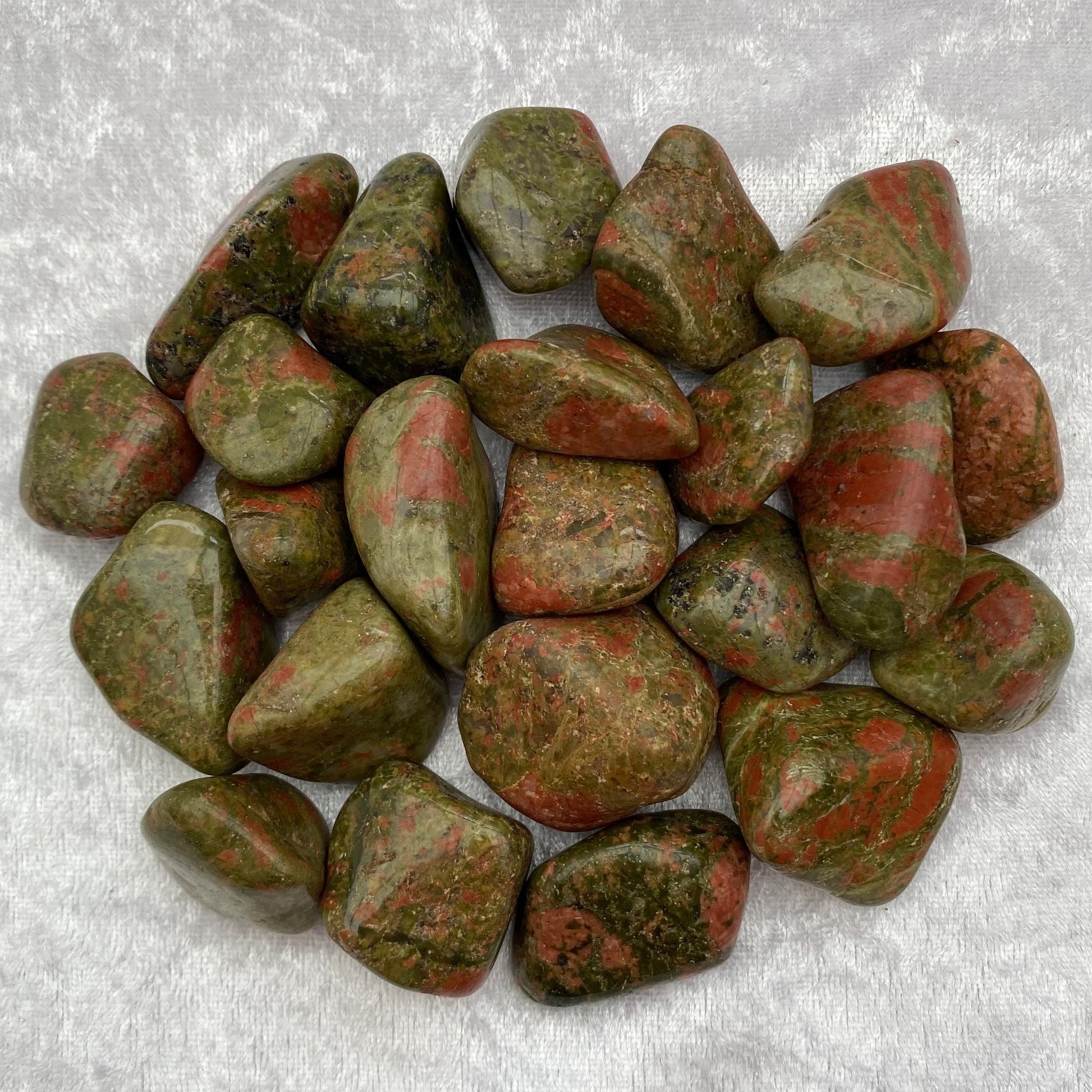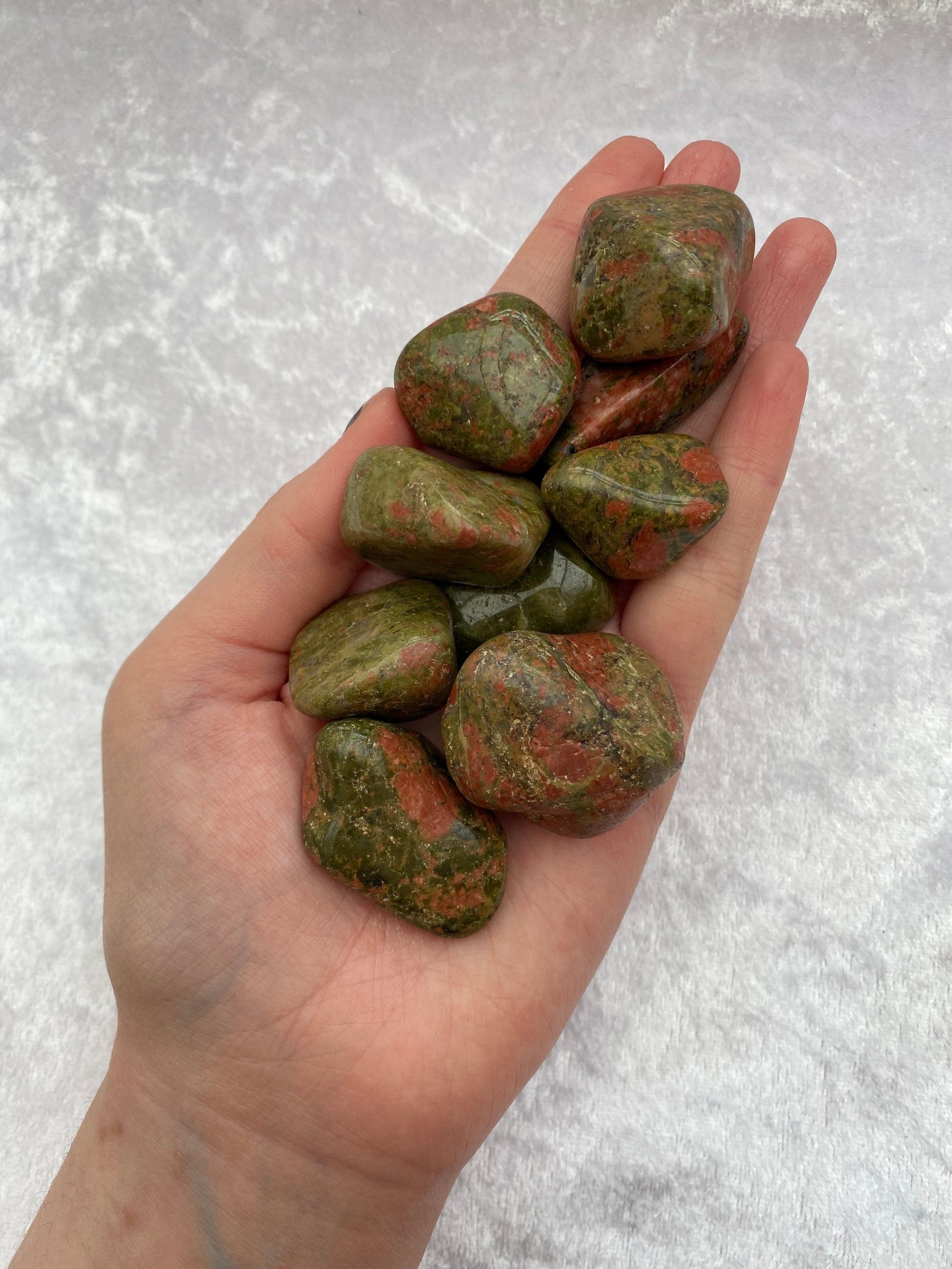Unakite is a metamorphic rock that forms when granite is altered by hydrothermal activity. During metamorphism, plagioclase in the granite is replaced by epidote to produce a rock composed primarily of green epidote, pink orthoclase, and clear to bluish-gray quartz.