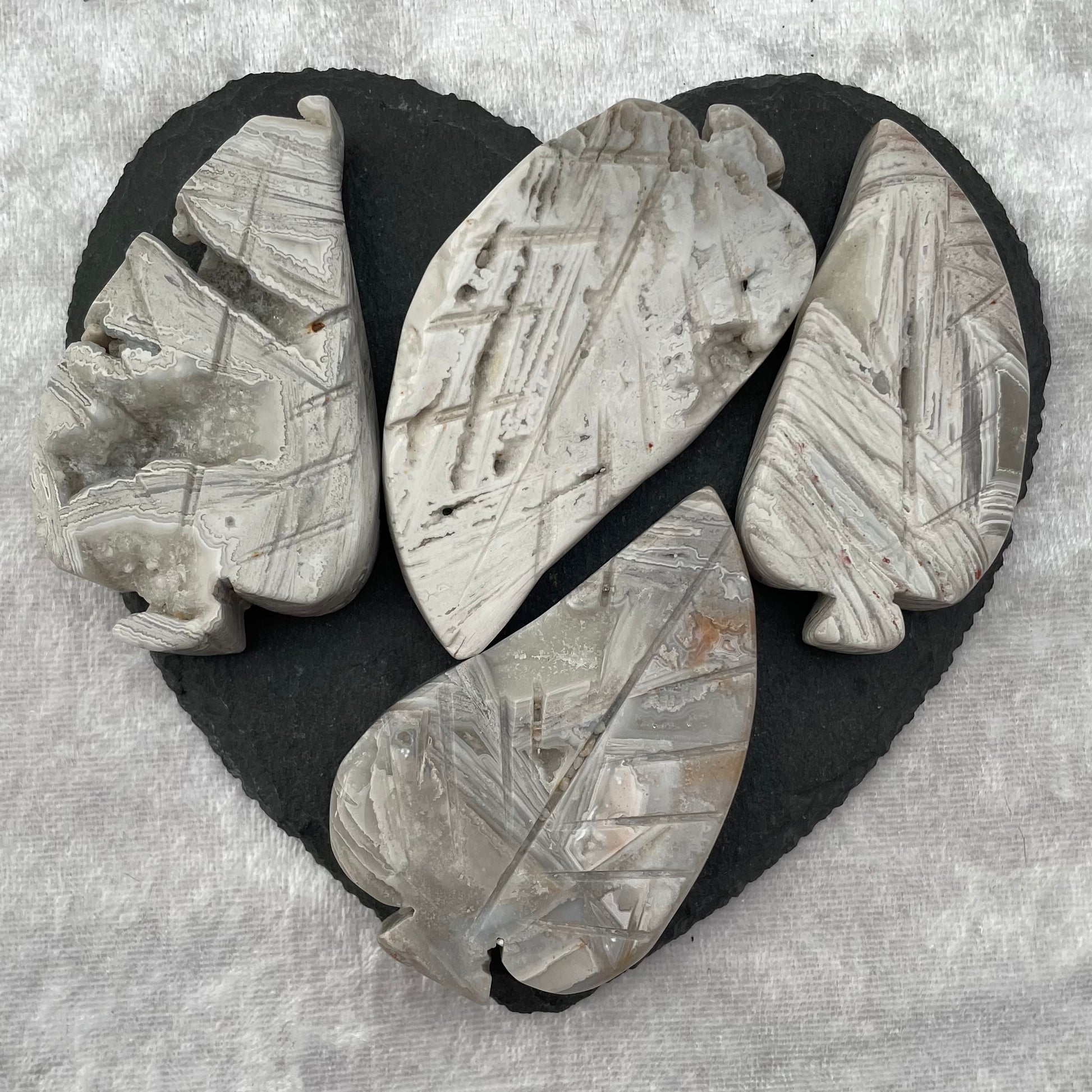 Agate is made up primarily of chalcedony and quartz and can include a wide range of colours. Agates are usually formed in volcanic and metamorphic rocks.